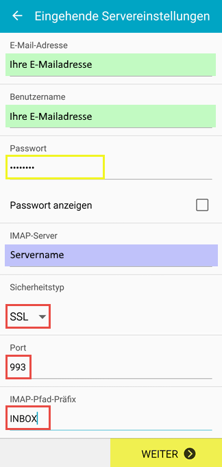 3. Geben sie ihre Benutzerdaten, die sie von uns per Mail erhalten haben, sowie ihre Domain beim Posteingangsserver an.