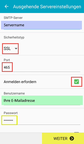 4.Geben sie ihre Benutzerdaten sowie die Domain beim Postausgangsserver an.