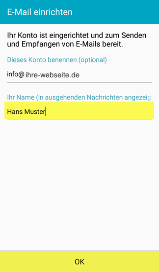 6. Wenn sie möchten können sie jetzt noch den Anzeigenamen ändern. Dieser wird bei anderen Benutzern als Absender angezeigt.