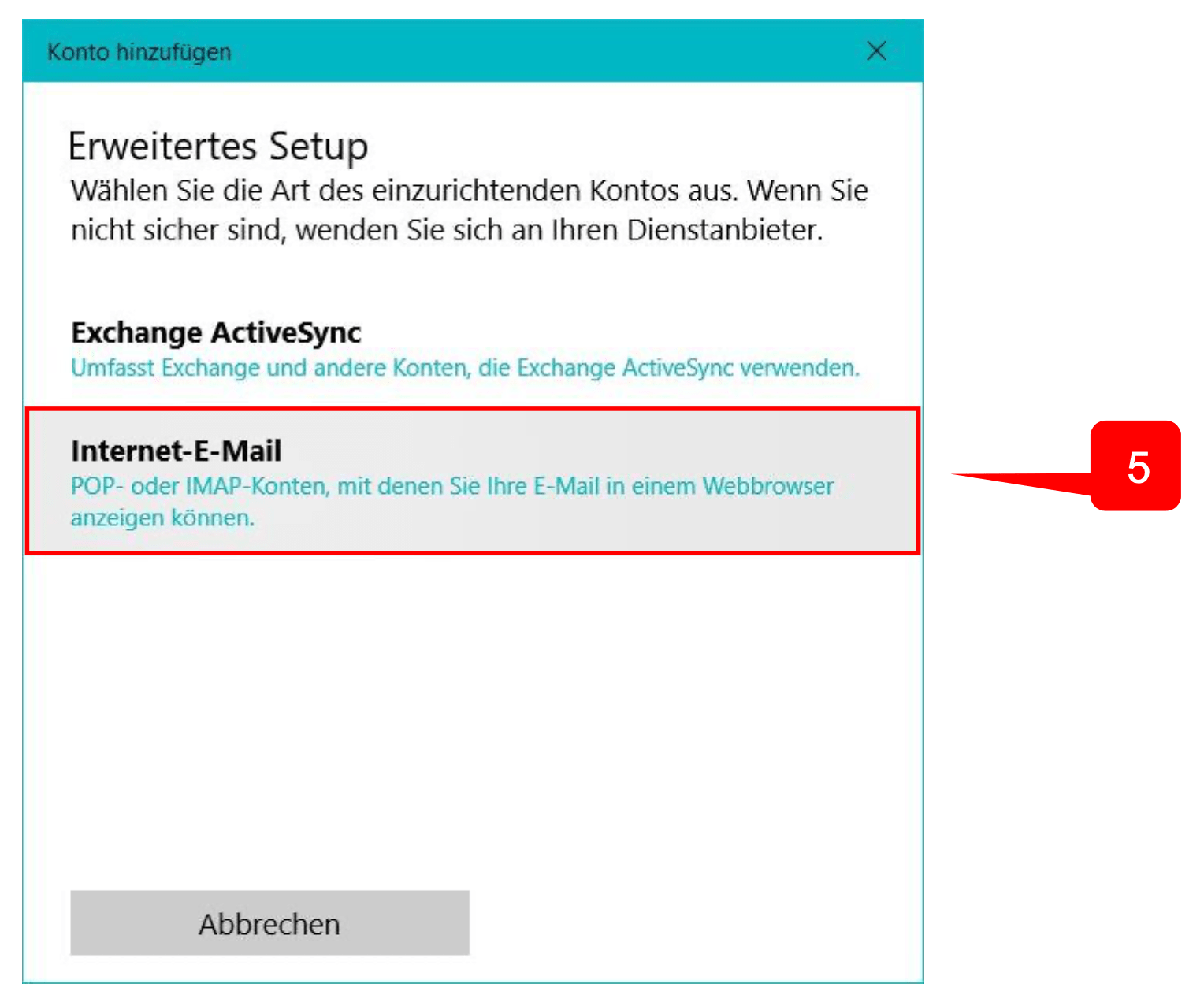5. Danach gehen Sie auf “Internet Mail”.