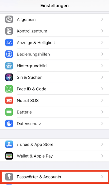 - Wählen sie im Menü “Einstellungen” die Option “Passwörter und Accounts” aus