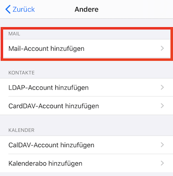 4. Im Anschluss tippen sie nun bitte auf “Mail-Account hinzufügen”.