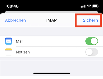 7. Wählen sie nun Mail aus und klicken sie im Anschluss auf Scihern – ihr Account ist nun fertiggestellt!