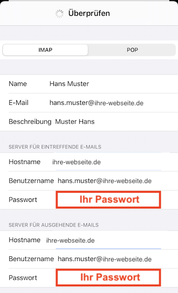 6. Wählen sie jetzt IMAP aus und geben sie ihre Benutzerdaten ein.